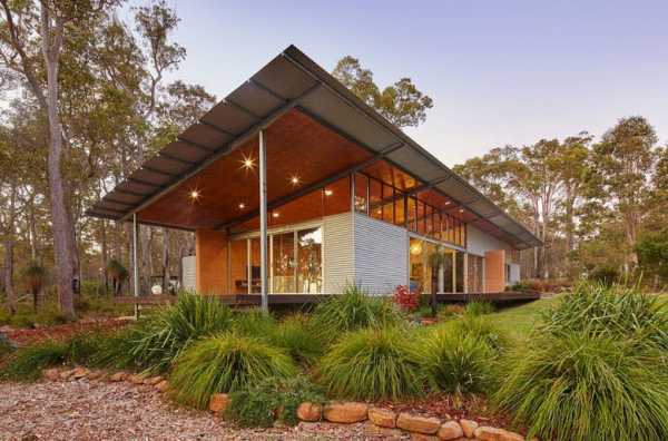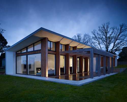 Минималистичность форм современных коттеджей не обязательно подразумевает лаконичность в материалах. В архитектуре таких домов могут одновременно присутствовать необработанный бетон и экзотическая древесина, металлические фермы и травяной газон на крыше.