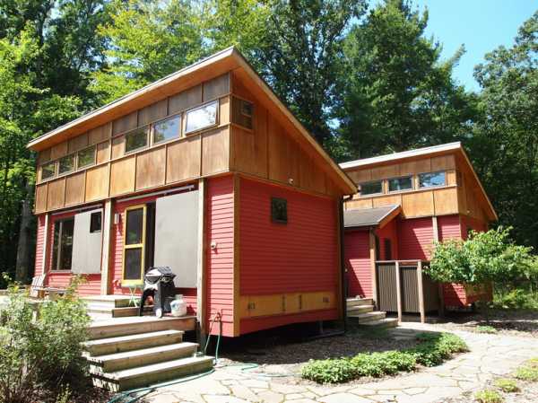 - Сруб с двумя односкатными крышами вполне годится для круглогодичного проживания