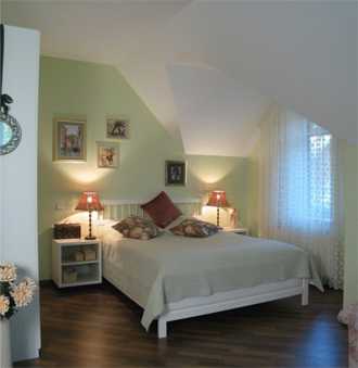 ×Также часто наклонный потолок, образуемый крышей делают с открытыми стропилами, которые придают интерьеру оригинальный вид.