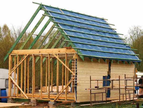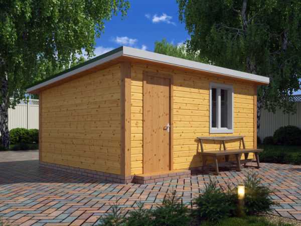 - Сруб с односкатной крышей идеально подходит под устройство бани