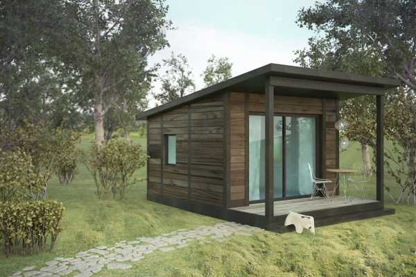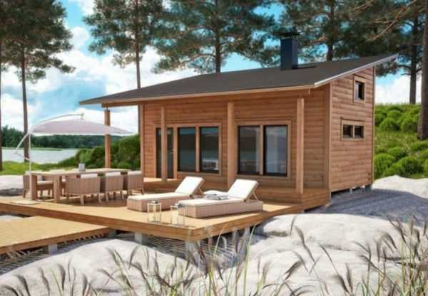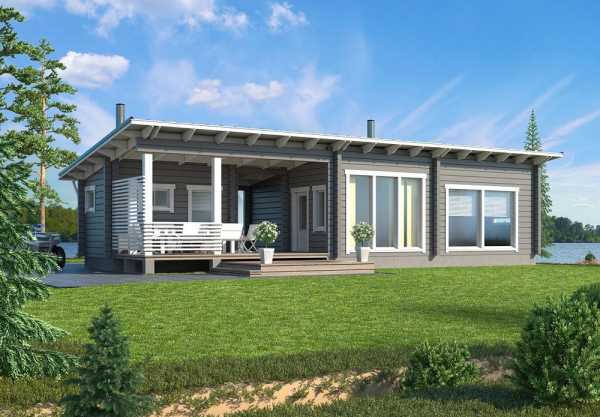 Компактные одноэтажные дома с плоской кровлей — стандартный вариант для сборных коттеджей из дерева.