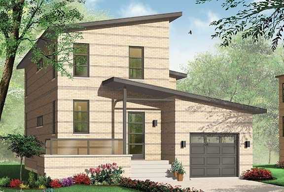 - Интересным и оригинальным представляется проект двухэтажного просторного дома со встроенным гаражом. Плоская крыша, большая площадь дома на небольшом участке земли решает вопрос использования полезного пространства с максимальной эффективностью.