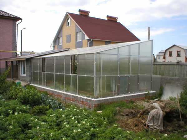 При правильном расчёте высоты и наклона крыши теплицы с неё можно легко счищать снег