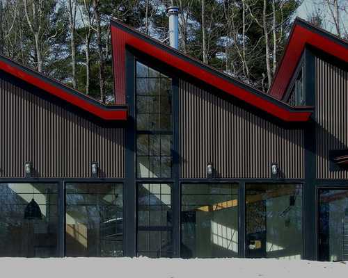 Рекомендуемые материалы: При большом уклоне крыши, гидроизоляционная мембрана может не использоваться. Чтобы придать динамичный облик, используйте листовое покрытие крыши (например, металл), а не черепицу или шинглас. Для получения эффекта пассивного дома используйте солнечные батареи и коллекторы.