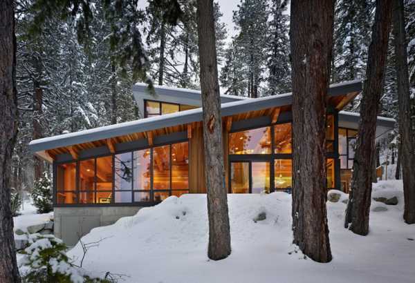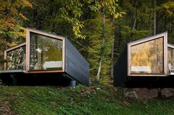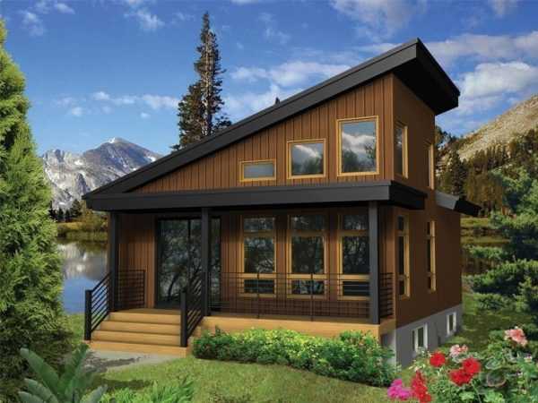 Одноэтажные сборные коттеджи с наклонной кровлей и сплошным остеклением по фронту — это идеальный вариант для тех, кто предпочитает что-то сверхсовременное. Расположенный на склоне у озера или реки, такой домик подарит вам небывалое удовольствие от уединения и живописного вида.