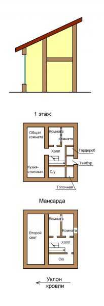 Если вас привлекает стиль минимализм, и вы хотите построить небольшой бюджетный дом, то деревянный коттедж с односкатной кровлей и мансардой будет самым экономичным решением.