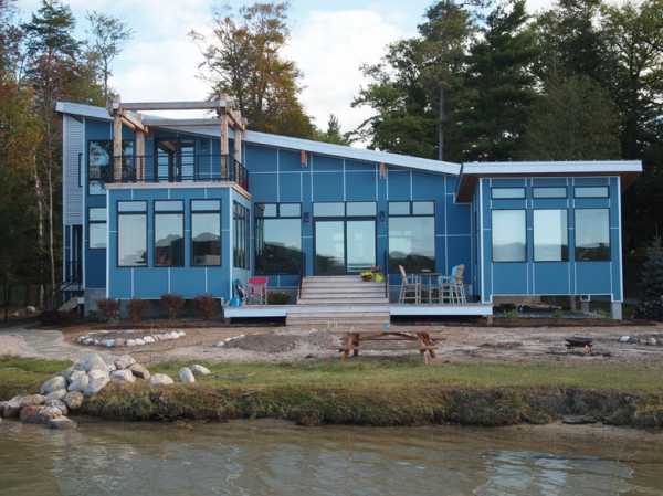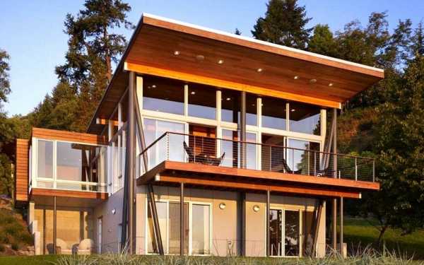 - оригинальные дизайнерские решения, придающие домам яркие решения по внешнему виду и возможности вписать в существующий ландшафт;