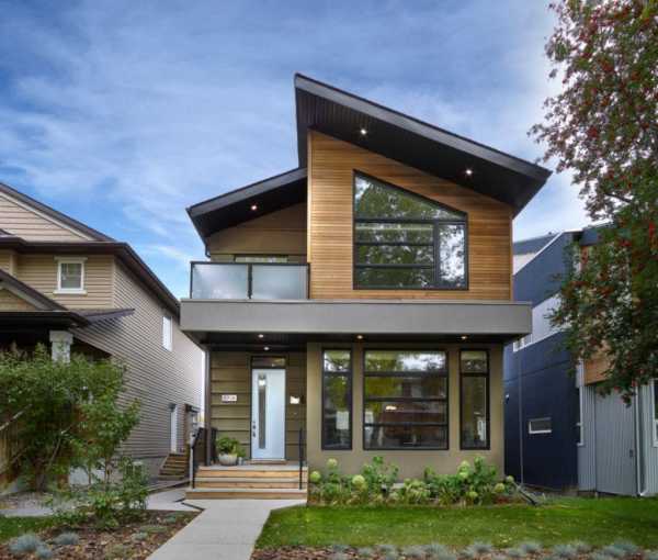 Оригинальность такого проекта достигается за счёт разнонаправленных плоскостей односкатных крыш