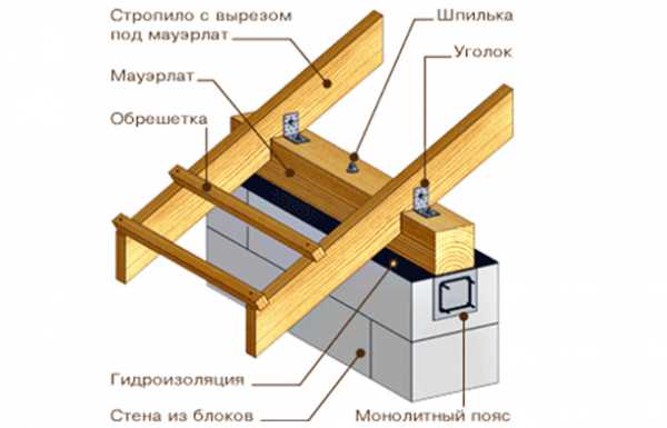 Сараи из блоков с односкатной крышей обустраивают с применением прочных балок, чтобы исключить разрушение от ветра. Крепление к таким балкам позволяет равномерно распределить нагрузку на стены.