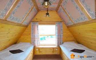 Домик полностью деревянный, сосновые стены и каркас из деревянных балок.