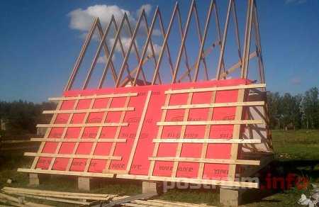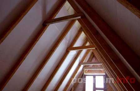 9. Когда слой пергамина уложен, то можно к стропилам прибивать обрешеточные рейки.