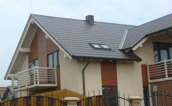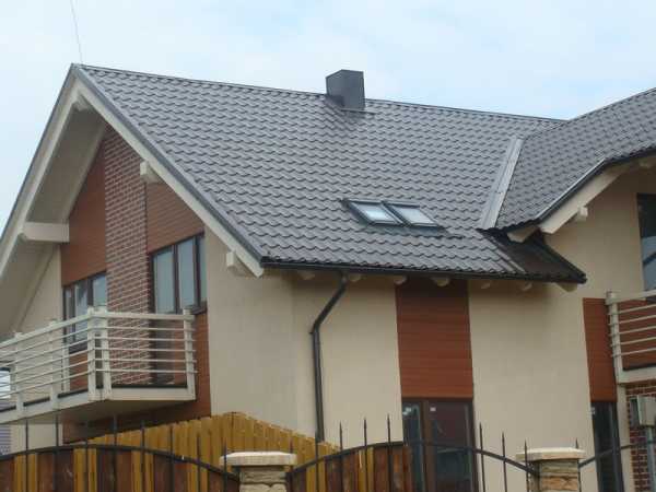 Если фасад дома достаточно пестрый — бежево-коричневый, красно-белый, серо-рыжий — оптимальный вариант кровельного покрытия в таком случае, это металлочерепица ахроматического черного или серого цвета.