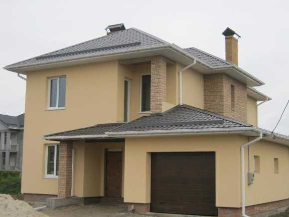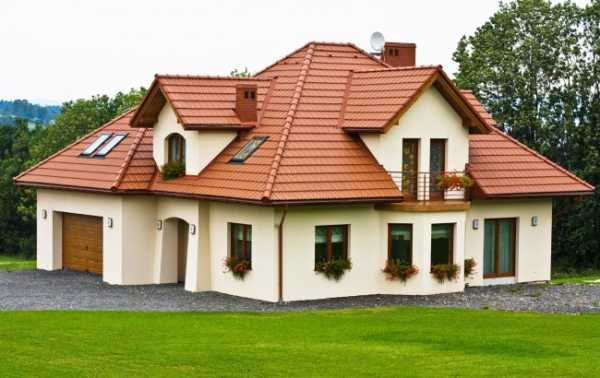 Если стены загородного дома окрашены в бежевый оттенок, то кровля более темного, коричневого тона будет смотреться наиболее выигрышно.