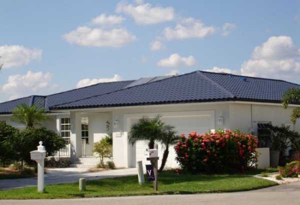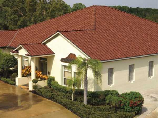 - Черепица светлых тонов нагревается не так сильно, но на ней очень хороша заметна любая грязь. Плохо сочетается с домом, стены которого выполнены из темного материала, но зато великолепно смотрится со стенами розового и бежевого цветов.
