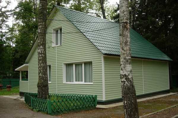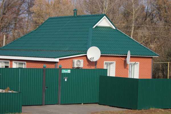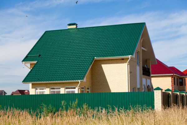 Дом с зеленой крышей из металлочерепицы на фото