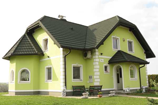 Выбрав зеленый цвет металлочерепицы можно создать привлекательный частный дом. Достоинство зеленого цвета – универсальность, ведь выбрав зеленую крышу нет ограничений по отделке фасада ни в цветовой гамме, ни в материале облицовки дома. Единственное, что при этом важно учесть, многие производители не соблюдают цветовых стандартов, поэтому весь материал нужно закупать только у одного конкретного производителя.