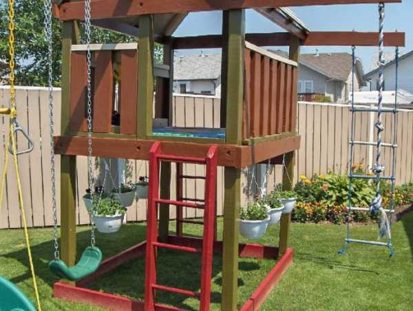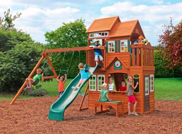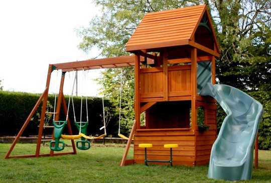 - Размещение. Правильное место для домика — в тени, но не слишком близко к деревьям, иначе они могут начать его задевать. Желательно также, чтобы вам было удобно присматривать за играющими детьми из любой точки дома и сада, и чтобы на его месте не планировалось никаких масштабных изменений.
