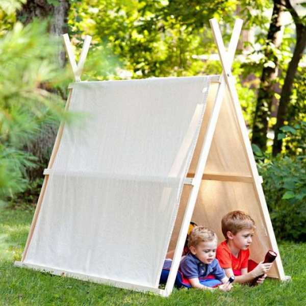 Для сооружения просторного игрового домика потребуется большая площадь, поэтому такой вариант подойдет тем, у кого большие квартиры. Если такой роскоши нет, это не беда. Даже в небольшом помещении можно создать своими руками домик для детей – палатку из разноцветных тканей. Для этого потребуется изготовить каркас из подходящего материала: