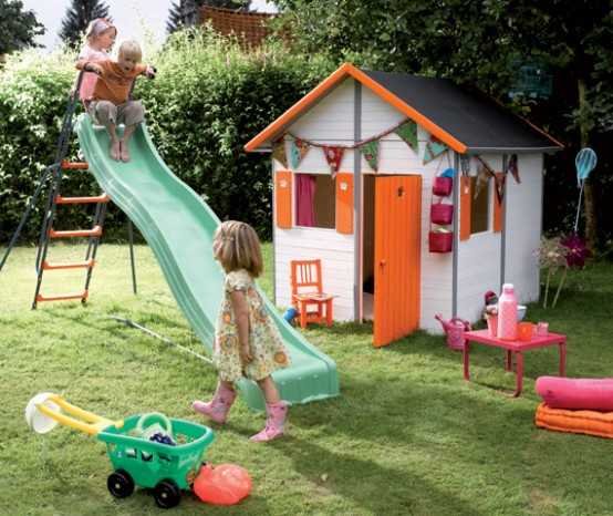 - Обладатели частного дома или дачного участка могут создать детский домик на улице.