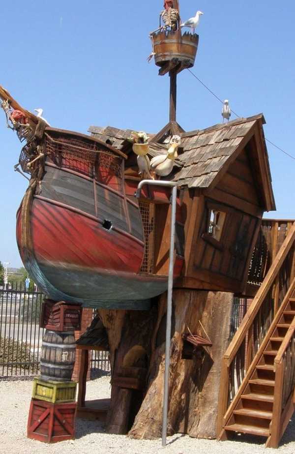 - Оригинальный вариант для мальчишек – домик в виде корабля.