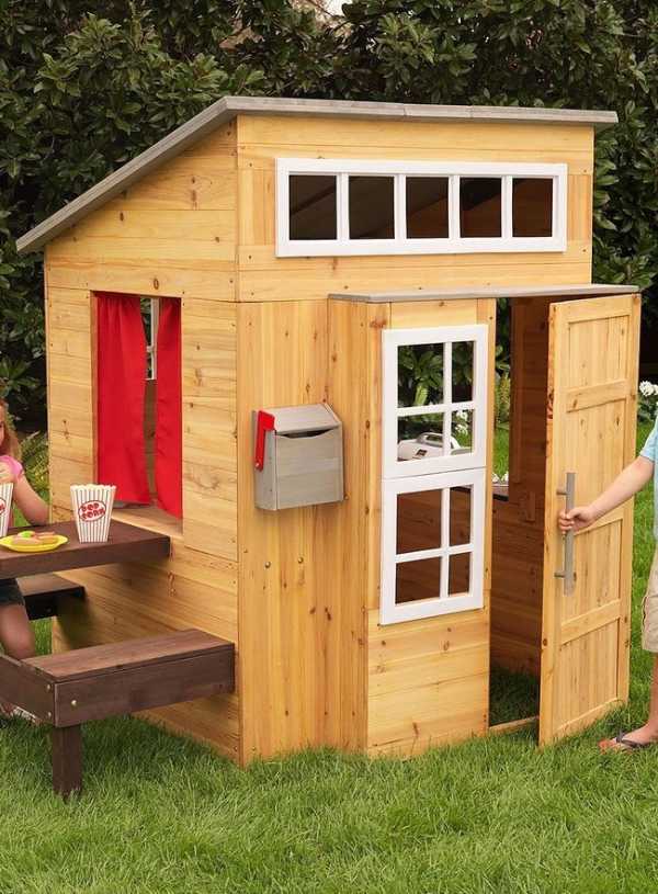 Конечно, не обязательно брать то, что уже придумал кто-то до вас. Но всегда можно воспользоваться чужими идеями для вдохновения. Так, детский деревянный домик может выглядеть очень по-разному.