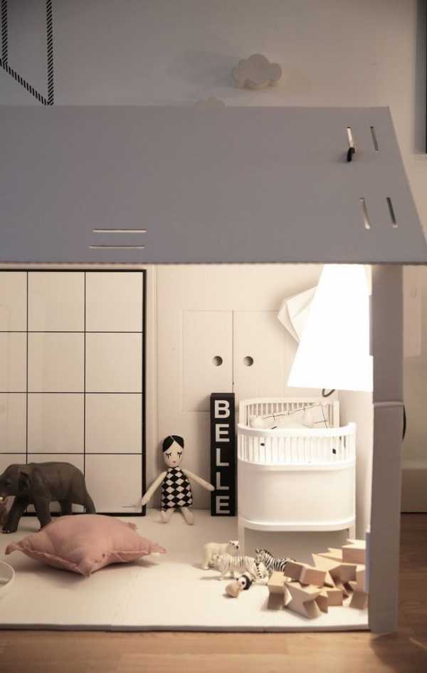 В «помещении» должно быть достаточно места для всех необходимых вещей. Это и кроватка для куклы, коляска, «шкафчик» для одежек, игрушечная кухня, больничка. Юные хозяюшки, несомненно, будут благодарны родителям за такое участие в их жизни.