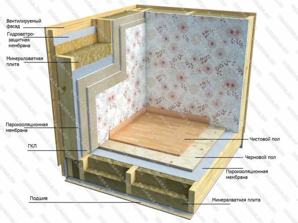 (перекрестное утепление позволяет дополнительно увеличить толщину утепления, перекрывая при этом мостики холода, которые образуют стойки каркаса)