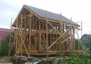 - Стойки, лежни (верхние и нижние), ригели и диагональные укосины. Внешние и внутренние несущие стены из доски 145×45 мм, внутренние перегородки 95х45 мм, шаг стоек 0,635 мм