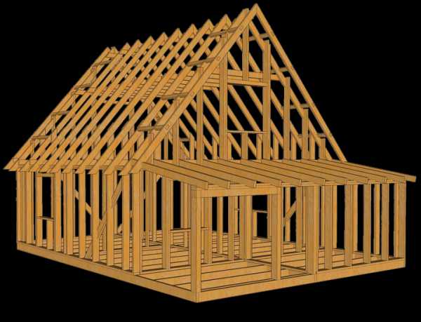 - Стропильная система (стропила из доски 195х45 мм с шагом 0,625 м, перемычки, ветровые ригели)