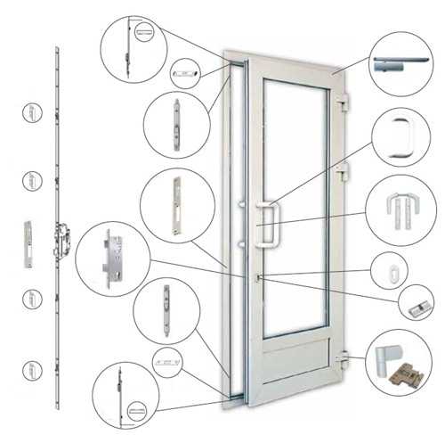 Это важные составляющие алюминиевого дверного блока. От качества фурнитуры зависит долговечность службы дверей, их теплоизоляционные и защитные свойства. В группу входят такие элементы как:
