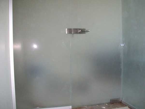 - Надевают стеклянные двери в алюминиевом каркасе на петли, проверяют их ход.