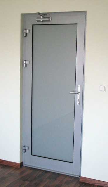 Глухие двери из алюминиевого профиля не имеют стеклянных, кожаных или любых других вставок. Их можно устанавливать как внутри, так и снаружи помещения. Те, что со стеклом, либо комплектуются полноценным стеклопакетом, либо просто имеют стеклянные вставки.