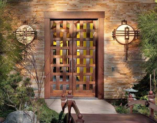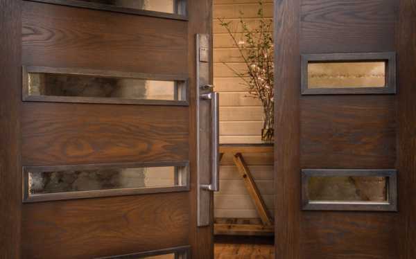 Деревянные входные двери. Современные технологии изготовления деревянных изделий заметно улучшились, при должной обработке они приобрели ранее недостижимое качество – перестали реагировать на перепады температуры, изменения влажности. Это позволяет применять дерево для сложных фасадных декоров, конструкций и входных дверей. Теперь красота натурального дерева сочетается с долговечностью, высокой надёжностью. Кроме перечисленных качеств материала стоит отметить экологическую чистоту, естественную низкую теплопроводность.