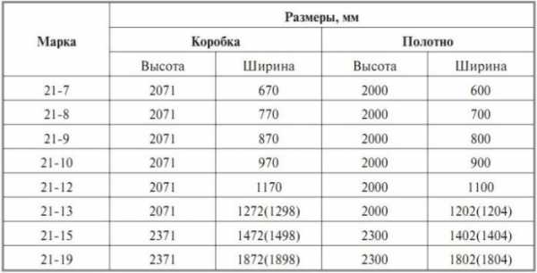 Ширина полотна отечественных изделий стартует от 60 см, увеличиваясь с шагом 10 см до значения 90 см. Ширина самого ходового товара – 80 см, а высота – 2,1 м.