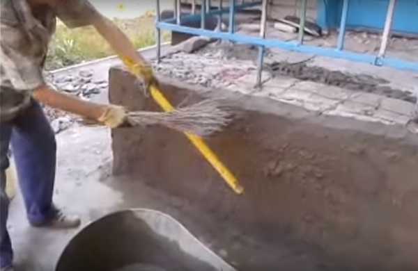 Набрызг через сетку и с веника выполняют любым раствором (даже с крупным заполнителем). Для набрызга со щетки пригоден только раствор с мелким заполнителем. Чтобы у вас получился плотный набрызг без пропуска, повторяйте его несколько раз, пока на поверхности не останется непокрытых раствором мест. Можно также использовать специальное приспособление для набрызга (внешне оно напоминает вентилятор).