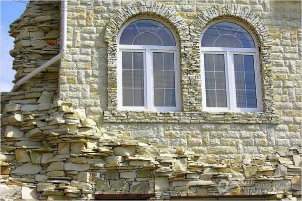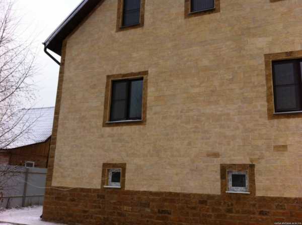 А вот так смотрится на фасаде нарезанный под плитку известняк: