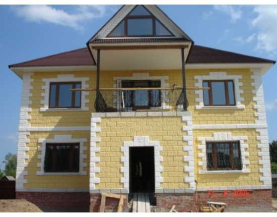Этот вид отделки популярен главным образом из-за низкой стоимости декоративной и цементно-песчаной штукатурки. Кроме того, этот отделочный материал позволяет импровизировать с цветом, рисунком и фактурой. Он повышает изоляцию дома и его огнеупорность. Покрытие быстро высыхает, не боится воды и ударов. Традиционно для оштукатуривания фасада используется штукатурка из цемента и песка, но наряду с ней также применяется декоративная (короед, барашек) и фасадная (акрил, силикон) штукатурка.