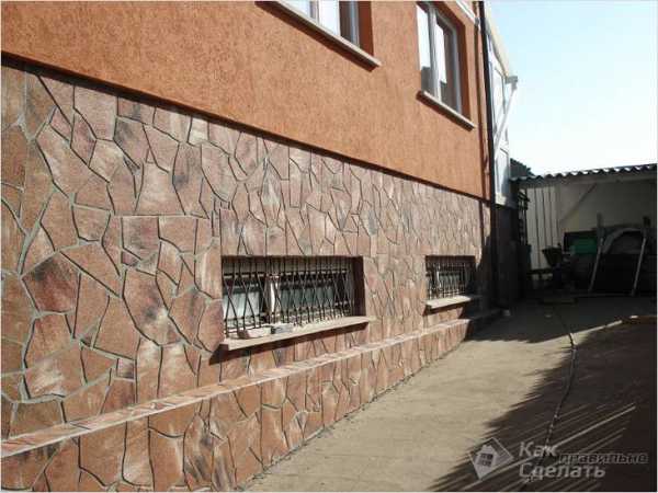Со временем его оттенок становится темнее, но чтобы избежать этого, можно покрыть поверхность защитным лаком. Если вы против использования природного камня, можете облицевать дом искусственной плиткой, повторяющей текстуру натурального материала: