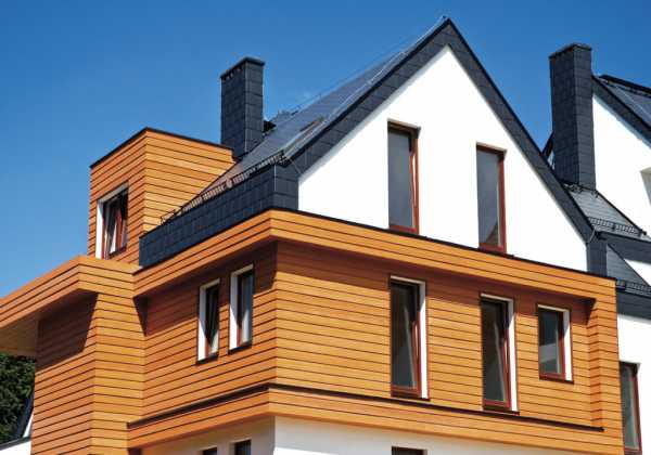Если вы не хотите использовать натуральное дерево, можно, как вариант, облицевать фасад панелями под дерево.
