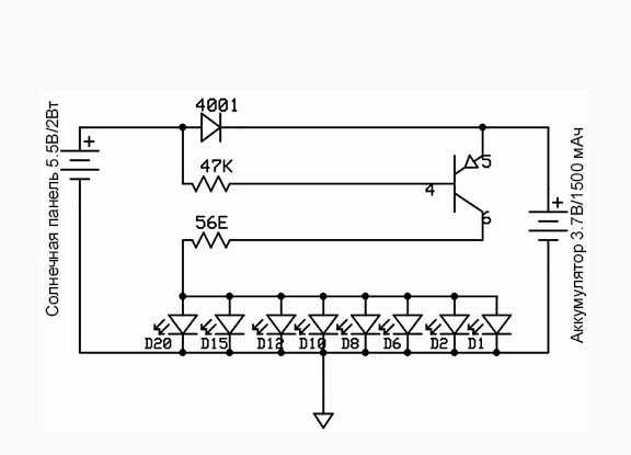 Схема садового светильника на солнечной батарее довольно проста. Однако для того чтобы в ней разобраться, будет необходимо минимальное понимание обозначений электрических устройств. Вопрос улучшения уже приобретенного устройства стоит очень остро у тех, кто купил светильники китайского производителя.