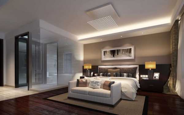 Потолок следует выполнить в четких, прямых линиях с ровной, однотонной фактурой. Мебель должна быть сдержанная, простая, сливаться с общим пространством, создавая ощущение воздушности. Здесь должно присутствовать минимум декоративных элементов. Все личные вещи следует скрыть от чужого взгляда.