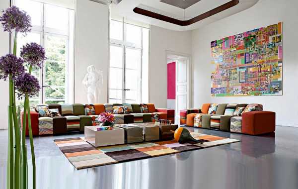 Яркие акценты можно создать с помощью картин, текстиля и диванных подушек