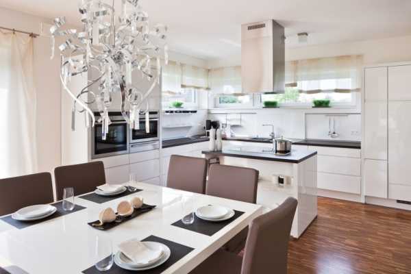 Красивый интерьер кухни выдержан в молочно-белых тонах