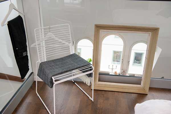 Лестница с оригинальными стеклянными перилами ведёт наверх. Там в свою очередь разместились удобный гардероб, спальня, в центре которой величественно стоит кровать, а также восхитительная терраса, на которой можно с удовольствием вдыхать ароматы улицы. Оформители сделали упор на современный функциональный дизайн, чтобы помещения квартир не выглядели громоздкими и тесными. Благодаря слаженной работе архитекторов и дизайнеров пространства теперь хватает всем!
