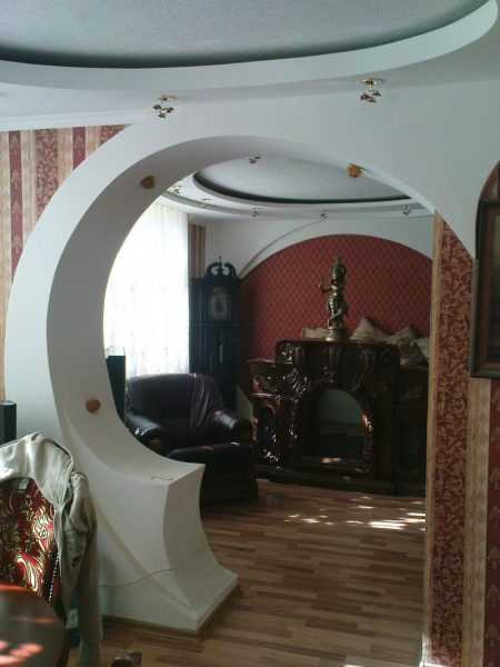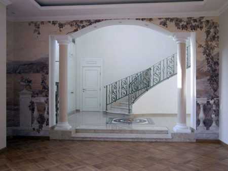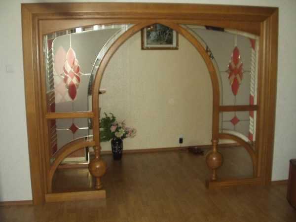 ΠΡΠ΅Π½Ρ ΡΠ°ΡΡΠΎ Π² Π·Π°Π»Π΅ ΡΡΡΠ°Π½Π°Π²Π»ΠΈΠ²Π°ΡΡ Π°ΡΠΊΠΈ Π² ΡΠΎΠΌΠ°Π½ΡΠΈΡΠ΅ΡΠΊΠΎΠΌ ΡΡΠΈΠ»Π΅ ΡΠΎ ΡΠΊΡΡΠ³Π»Π΅Π½Π½ΡΠΌΠΈ ΡΠ³Π»Π°ΠΌΠΈ. Π’Π°ΠΊΠ°Ρ ΠΊΠΎΠ½ΡΡΡΡΠΊΡΠΈΡ Π±ΡΠ΄Π΅Ρ Π½Π°ΠΈΠ±ΠΎΠ»Π΅Π΅ ΠΏΠΎΠ΄Ρ ΠΎΠ΄ΡΡΠ΅ΠΉ, Π΅ΡΠ»ΠΈ Π²Ρ ΠΏΠ»Π°Π½ΠΈΡΡΠ΅ΡΠ΅ Π΄Π΅ΠΌΠΎΠ½ΡΠ°ΠΆ Π΄Π²ΡΡΡΠ²ΠΎΡΡΠ°ΡΡΡ Π΄Π²Π΅ΡΠ΅ΠΉ. ΠΡΠΈ ΡΡΠΎΠΌ ΡΠΈΠΌΠΌΠ΅ΡΡΠΈΡΠ½Π°Ρ ΡΠΎΠΌΠ°Π½ΡΠΈΡΠ΅ΡΠΊΠ°Ρ Π°ΡΠΊΠ°, ΡΡΡΠ°Π½ΠΎΠ²Π»Π΅Π½Π½Π°Ρ Π² Π·Π°Π»Π΅, Π±ΡΠ΄Π΅Ρ Π²ΡΠΏΠΎΠ»Π½ΡΡΡ Π΄Π²Π΅ Π·Π°Π΄Π°ΡΠΈ: ΠΏΡΠΈΠ΄Π°ΡΡ ΠΏΡΠΈΠ²Π»Π΅ΠΊΠ°ΡΠ΅Π»ΡΠ½ΠΎΡΡΡ Π±ΠΎΠ»ΡΡΠΎΠΌΡ Π΄Π²Π΅ΡΠ½ΠΎΠΌΡ ΠΏΡΠΎΠ΅ΠΌΡ ΠΈ Π²ΠΈΠ·ΡΠ°Π»ΡΠ½ΠΎ ΠΎΡΠ΄Π΅Π»ΠΈΡ ΠΊΠΎΠΌΠ½Π°ΡΡ.