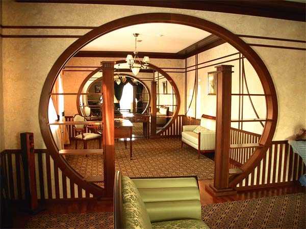 ΠΡΠΎΠΌΠ΅ ΡΡΠΎΠ³ΠΎ, Π΄Π»Ρ Π·Π°Π»Π° ΠΏΠΎΠ΄Ρ ΠΎΠ΄ΠΈΡ ΡΡΠΈΠ»Ρ Β«ΠΌΠΎΠ΄Π΅ΡΠ½Β», ΡΠ°ΠΊΠ°Ρ Π°ΡΠΊΠ° Π²ΡΡΠ΅Π·Π°Π΅ΡΡΡ Π² Π²ΠΈΠ΄Π΅ ΡΡΠ°ΠΏΠ΅ΡΠΈΠΈ ΠΈΠ»ΠΈ ΡΠ»Π»ΠΈΠΏΡΠ°, ΡΠ°ΡΡΠΎ ΡΠΊΡΠ°ΡΠ°Π΅ΡΡΡ ΡΠΎΡΠΏΠΈΡΡΡ, ΡΠ΅Π·Π½ΡΠΌ Π΄Π΅ΠΊΠΎΡΠΎΠΌ ΠΈΠ· Π΄Π΅ΡΠ΅Π²Π°, Π²ΠΈΡΡΠ°ΠΆΠ½ΡΠΌΠΈ ΠΊΠΎΠΌΠΏΠΎΠ·ΠΈΡΠΈΡΠΌΠΈ.