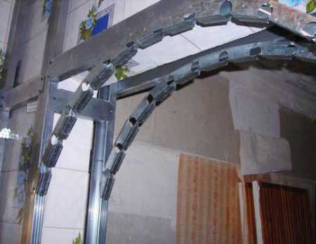 ΠΠΎΡΠ»Π΅ ΡΡΠΎΠ³ΠΎ Π΄Π»Ρ Π±ΡΠ΄ΡΡΠ΅ΠΉ Π°ΡΠΊΠΈ Π½ΡΠΆΠ½ΠΎ ΡΠ΄Π΅Π»Π°ΡΡ ΠΊΠ°ΡΠΊΠ°Ρ. ΠΠ»Ρ ΡΡΠΎΠ³ΠΎ ΠΎΡΡΠ΅Π·Π°ΡΡΡΡ Π΄Π²Π° ΠΏΡΠΎΡΠΈΠ»Ρ, ΠΈΡ Π΄Π»ΠΈΠ½Π° Π±ΡΠ΄Π΅Ρ ΡΠ°Π²Π½Π° ΡΠΈΡΠΈΠ½Π΅ ΠΏΡΠΎΠ΅ΠΌΠ°. ΠΠ½ΠΈ Π·Π°ΠΊΡΠ΅ΠΏΠ»ΡΡΡΡΡ Π² Π²Π΅ΡΡ Π½Π΅ΠΉ ΡΠ°ΡΡΠΈ. ΠΠ° ΠΊΠ°ΠΆΠ΄ΡΡ ΡΡΠ΅Π½Ρ Π½ΡΠΆΠ½ΠΎ ΡΠΎΠΆΠ΅ ΠΏΠΎ Π΄Π²Π° ΠΊΡΡΠΊΠ° ΠΏΡΠΎΡΠΈΠ»Ρ, Π΄Π»ΠΈΠ½Π° ΠΈΡ Π±ΡΠ΄Π΅Ρ Π·Π°Π²ΠΈΡΠ΅ΡΡ ΠΎΡ Π²ΡΠ±ΡΠ°Π½Π½ΠΎΠΉ ΠΌΠΎΠ΄Π΅Π»ΠΈ. ΠΡΠΎΡΠΈΠ»Ρ Π·Π°ΠΊΡΠ΅ΠΏΠ»ΡΠ΅ΡΡΡ ΡΠ°ΠΌΠΎΡΠ΅Π·Π°ΠΌΠΈ.