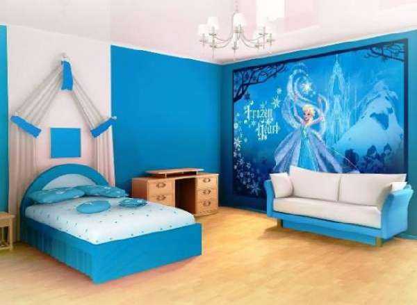 А вот, пожалуй, самый необычный вариант — детские фотообои холодное сердце. У вашей дочери обязательно возникнет ощущение сказки, если она попадет в такую комнату. Дальше можно увидеть несколько примеров.