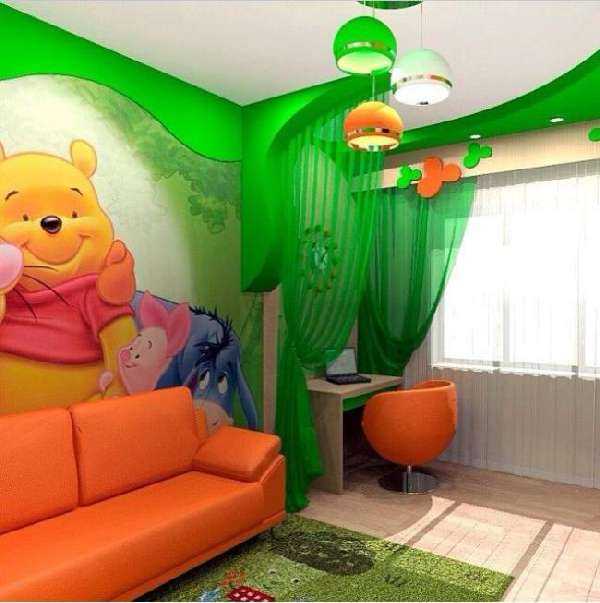 Зеленый и оранжевый в детской для разнополых детей