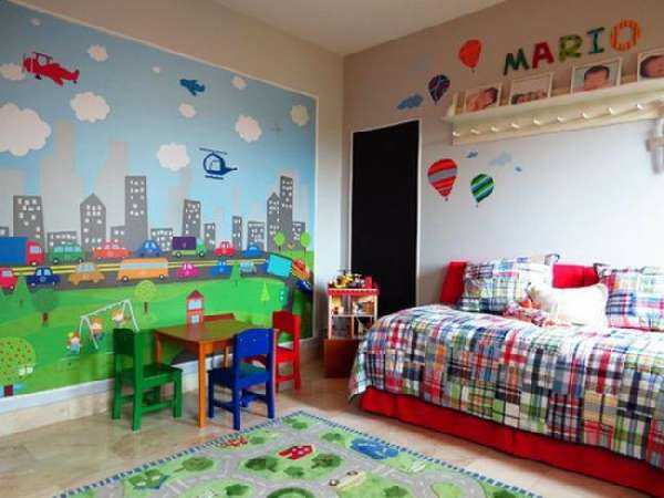 А иногда наоборот приятно лицезреть в детской комнате изображение города. Смотрится такой интерьер тоже довольно неплохо. Вот несколько примеров детской комнаты с городом.
